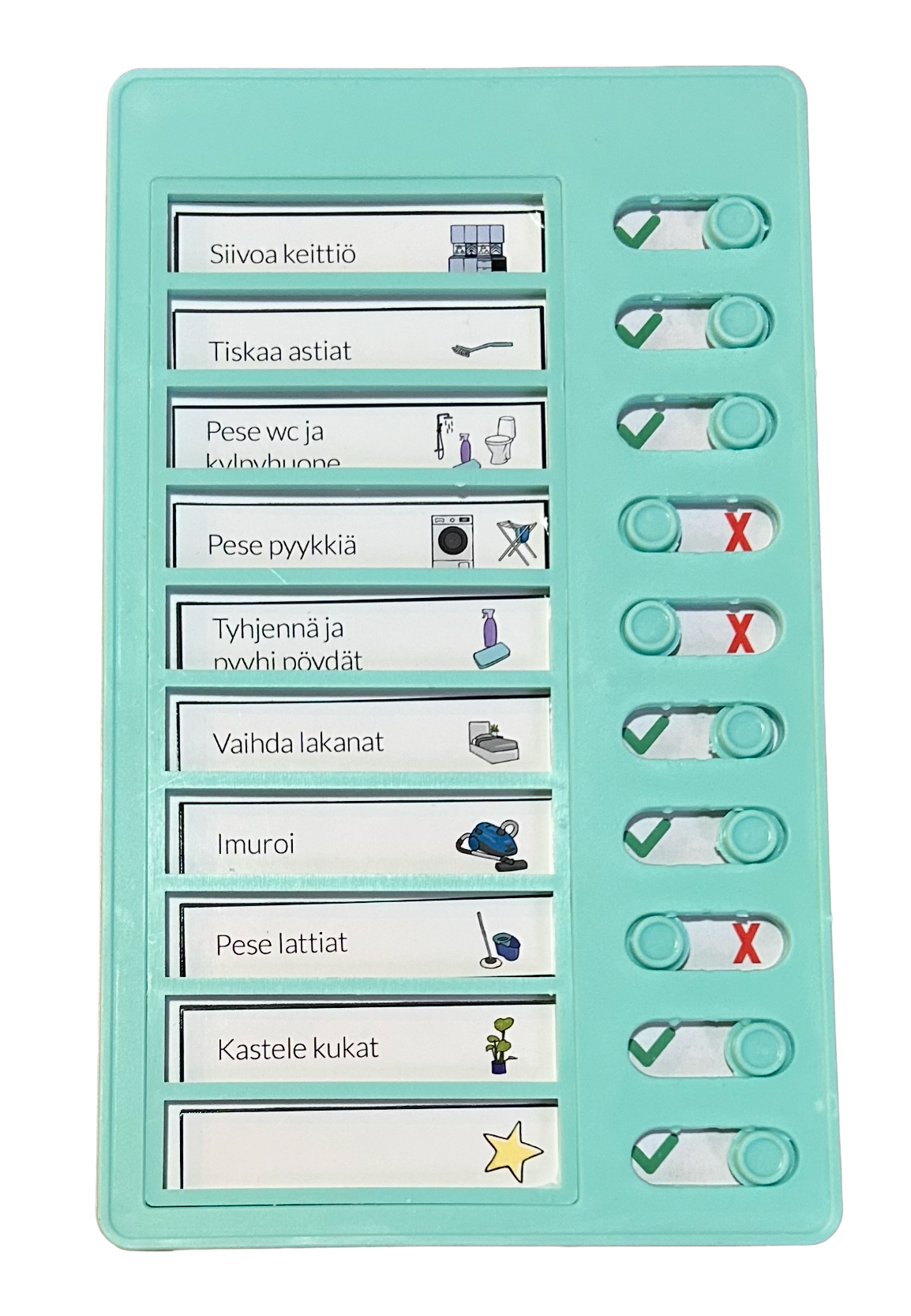 Täppitaulun avulla arjen jumitukset ja unohdukset vaihtuvat onnistumisen iloon: kaikki hommat tuli hoidettua!